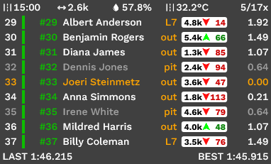 Indicateurs de trafic multiclasses, de positionnement, de repérage, de suivi personnalisables, de plan de piste et de plan plat, ainsi qu'une intégration simple du chat Twitch. Que demander de plus ?!
